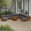 Ova drvena garnitura savršena je kombinacija stila i funkcionalnosti. Uz ovu garnituru u vašem vrtu, možete provesti opuštajuće i umirujuće trenutke s obitelji i prijateljima. S okvirom od masivnog bagremovog drva, set sofa je snažan, čvrst i izdržljiv, a uljni premaz čini ga prikladnim za vanjsku upotrebu. Odvojivi jastuci gusto su podstavljeni, tako da nude veliku udobnost sjedenja. Stolić za kavu s jedinstvenim rešetkastim dizajnom također je uključen. Osim toga, garnitura se ističe svojim modularnim dizajnom te se svi dijelovi mogu rasporediti i prilagoditi prema vašoj potrebi. Ova vanjska garnitura sigurno će biti središnja točka vašeg vrta ili terase. Napomena: Kako biste produžili vijek trajanja svog vanjskog namještaja, preporučujemo vam da ga redovito čistite i ne ostavljate ga nepotrebno na otvorenom bez zaštite.Čišćenje: Upotrijebite blagu otopinu sapunaSpremanje: Ako je moguće, čuvajte na hladnom i suhom mjestu u zatvorenom. Ako se proizvod čuva na otvorenom, zaštitite ga vodootpornom navlakom. Obrišite i osušite višak vode ili snijega s ravnih površina nakon kiše ili snijega. Omogućite dovoljnu cirkulaciju zraka kako biste izbjegli oštećenja od vlage.
