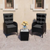Ovaj elegantni vrtni bistro set bit će središnja točka vašeg vrta ili terase! Odličan je izbor za objedovanje na otvorenom ili opuštanje u vanjskom prostoru! Čelični okviri obloženi prahom čine stol i stolice snažnima i čvrstima. Zahvaljujući svojoj laganoj konstrukciji, svi se artikli lako pomiču. Ratan od PE-a otporan na vremenske utjecaje i staklena površina lako se čiste vlažnom krpom. Fotelje su dizajnirane sa zakrivljenim naslonima za leđa i ruke radi maksimalne udobnosti. Jastuci su uključeni za dodatnu potporu, a navlaka s patentnim zatvaračem može se skinuti za lako pranje.