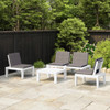 Ova vrtna garnitura izvrstan je izbor za opuštanje i uživanje u vremenu, drijemanje ili razgovor s obitelji i prijateljima. Ova vrtna garnitura napravljena je od plastike, što je čini lakom za čišćenje i stabilnom. S čvrstom stolnom pločom, stol je idealan za držanje hrane i pića na dohvat ruke. Nasloni za leđa i jastuci pridonose udobnosti ovih vanjskih sjedalica.