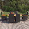 Stvorite neodoljivu i povezanu estetiku u svom vanjskom prostoru uz ovaj vrtni blagovaonski set! Blagovaonski stol napravljen je od masivnog bagremovog drva, zbog čega je čvrst i stabilan. Površina premazana uljem čini ga prikladnim i za vanjsku upotrebu. S čeličnim okvirom prekrivenim PE ratanom otpornim na vremenske utjecaje, blagovaonske stolice čvrste su i jednostavne za čišćenje. Nasloni za ruke lijepo su ukrašeni masivnim bagremovim drvom, što daje osjećaj rustičnog šarma. Naslon se može naginjati povlačenjem gumba sa strane. Debelo podstavljeni jastuci također daju dodatnu udobnost sjedenju dok se odmarate. Napomena: Kako biste produžili vijek trajanja svog vanjskog namještaja, preporučujemo vam da ga redovito čistite i ne ostavljate ga nepotrebno na otvorenom bez zaštite.Čišćenje: Upotrijebite blagu otopinu sapuna.Pohrana: Ako je moguće, čuvajte na hladnom i suhom mjestu u zatvorenom. Ako se proizvod čuva na otvorenom, zaštitite ga vodootpornom navlakom. Obrišite i osušite višak vode ili snijega s ravnih površina nakon kiše ili snijega. Omogućite dovoljnu cirkulaciju zraka kako biste izbjegli oštećenja od vlage.