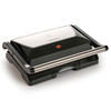 Kompaktni kontaktni roštilj s aplikacijom od nehrđajućeg čelika na vrhu kućišta Snaga: max 900 W Ploče za roštilj s premazom protiv lijepljenja Dimenzije ploča za roštilj: cca 230 x 145 mm svaka Indikator rada uklonjiva posuda za skupljanje masti Štedi prostor i stoga se lako skladišti