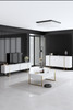 Pretvorite svoju dnevnu sobu u luksuzni i elegantni prostor sa našim zapanjujućim set namještajem za dnevne sobe. Izrađen s najvećom preciznošću i pažnjom na detalje, ovaj set je dizajniran za podizanje vašeg domaćeg dekora na nove visine. Oslobodite ljepotu bijelog i zlata Kombinacija bijelih i zlatnih boja dodaje dodir bogatstva i sofisticiranosti u vašu dnevnu sobu. Kontrastne nijanse stvaraju vizualno zapanjujući učinak koji će vam ostaviti goste u strahu. Doživite neusporedivu izdržljivost Napravljen od 100% iverice melamine, ovaj set namještaja izgrađen je za trajanje. Debljina od 18 mm osigurava izuzetnu snagu i stabilnost, što vam omogućava da uživate u svom namještaju godinama koje dolaze. Podignite svoj stil metalnim nogama Metalne noge ne pružaju samo čvrstu podršku, već dodaju moderan i savremeni dodir na set namještaja. Elegantni i sjajni finiš nogu dopunjuju cjelokupni dizajn, stvarajući kohezivni i elegantan izgled. savršeno veličine za vašu udobnost Konzola, TV štand i stolić za kavu zamišljeno su dizajnirani da se neprimjetno uklope u vašu dnevnu sobu. Uz precizne dimenzije nude dovoljno prostora za pohranu bez prevladavanja sobe. Tehnički detalji: Materijal: 100% iverice melamine obložene Debljina: 18 mm Metalne noge za dodatnu stabilnost Dimenzije konzole: širina: 160 cm, dubina: 35 cm, visina: 80 cm TV postolje Dimenzije: širina: 180 cm, dubina: 30 cm, visina: 50 cm Dimenzije stola za kavu: širina: 90 cm, dubina: 60 cm, visina: 40 cm Nadogradite svoj dnevni boravak sa našim namještajem za dnevne sobe, danas i doživite savršen spoj stila, izdržljivosti i funkcionalnosti. Stvorite prostor koji odražava vašu jedinstvenu ličnost i prepuštajte se luksuzom koji zaslužujete. 100% MELAMINSKA OBLOGA IVERICA