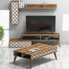 Transformirajte svoju dnevnu sobu u utočište komfora i stila sa našim izuzetnim set nameštajem dnevnog boravka. Izrađen sa 100% melaminom prekrivenim ivericom, ovaj set je izgrađen da traje i izdrži test vremena. Doživite neusporedivu eleganciju Sa svojim američkim tradicionalnim konceptom i zapanjujućim dizajnom cvijeta, ovaj set namještaja dodat će dodir sofisticiranosti u bilo koji prostor. Kombinacija oraha i bijelih boja stvara skladnu mješavinu koja će bez napora dopunjavati vaš postojeći dekor. Stvorite funkcionalni prostor Uz prostranu TV jedinicu, zidnu policu i stolić za kavu, ovaj set nudi dovoljno mogućnosti skladištenja i prikazivanja svih vaših esencijama. Brojne police pružaju savršeno mjesto za prikaz vaših omiljenih knjiga, dekornih komada i porodičnih fotografija. Poboljšajte svoje životno iskustvo Dizajniran je s vašom udobnošću, ovaj set namještaja može se lako pričvrstiti na zid, osiguravajući stabilnost i sigurnost. Debljina od 18 mm melamine obložene iverice dodaje izdržljivost i snagu, što ga čini dugotrajnim ulaganjima. Tehnički detalji: Materijal: 100% iverice melamine obložene Debljina: 18 mm TV jedinica: širina: 150cm, visina: 37cm, dubina: 38cm Zidna polica Veličina: širina: 140cm, visina: 22cm, dubina: 70cm Veličina stola za kavu: širina: 105cm, visina: 60cm, dubina: 37cm Boja: orah i bijela Koncept: Američki tradicionalni, dizajn cvijeta 100% MELAMINSKI OBLOGE