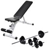 Ova klupa za vježbanje, koja se isporučuje sa setom dvoručnih i jednoručnih utega, poboljšat će vašu fizičku kondiciju, tonirati vaše mišiće i, u kombinaciji s prehranom koja kontrolira kalorije, pomoći vam da smršavite. Prikladna je za vašu privatnu kućnu teretanu ili bilo koju komercijalnu teretanu ili dvoranu za vježbanje. Klupa za utege opremljena je podesivim naslonom za leđa. Naslon će udobno podržavati vaša leđa i ramena za vrijeme vježbanja. Pet podesivih postavki naslona omogućuje vam odabir najudobnijeg položaja i prilagodbu intenziteta treninga u skladu s vašim posebnim potrebama. Ova višenamjenska klupa za vježbanje izrađena je od čelika vrhunske kvalitete, a izdržljivi, podstavljeni jastuk pružit će vam odličnu udobnost tijekom vježbanja. Set dvoručnih i jednoručnih utega sadrži čvrste kromirane šipke s opružnim spojnicama s brzim djelovanjem (za šipku s dvoručnim utezima), neklizeće drške i zvjezdaste vijke s utorima i poklopcima (za šipku s jednoručnim utezima) za sigurno pričvršćivanje ploča za utege. Možete vježbati bez brige o sigurnosnim pitanjima. Ploče za utege napravljene su s čvrstom navlakom od polietilena. Mogu se kombinirati na razne načine za različite svrhe vježbanja. Isporuka uključuje klupu za dizanje utega, šipku za dvoručni uteg, dvije šipke za jednoručni uteg, šest ploča za utege od 1,25 kg, četiri ploče za utege od 2,5 kg, dvije ploče za utege od 5 kg, četiri poklopca i dvije opružne spojnice.