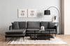 Okvir: 100% METAL Tkanina: POLIESTERSKA TKANINA Dubina sjedala: 55 cm Širina sjedala: 160 cm Visina sjedala: 43 cm Duljina kutnog sjedala: 180 cm Širina kutnog sjedala: 85 cm Ukupna širina sjedala: 245 cm 2 jastuka 32 DNS pjena + premaz od vlakana za sjedenje 32 DNS pjena + premaz od vlakana za naslon Kutno sjedalo i stranice sofe su odvojive