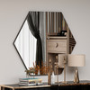 100% MDF Heksagonalno ogledalo Širina: 70 cm Visina: 60 cm Dubina: 2,2 cm Ekološko ogledalo Flotal-E Može se pričvrstiti na zid