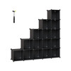 Specifikacije:- Boja: Crna- Materijal: PP plastična ploča, metalni okvir, ABS plastični spoj- Veličina jedinice 15 kocki (oblik stepenica): 153 x 31 x 153 cm (D x Š x V)- Veličina jedinice 16 kocki (kvadratni oblik): 123 x 31 x 123 cm (D x Š x V)- Unutarnja veličina po kocki: 30 x 30 x 30 cm (D x Š x V)- Težina proizvoda: 8,3 kg- Maks. statička nosivost po kocki: 5 kg Sadržaj pakiranja:- 56 x PP ploča (30 x 30 cm)- 52 x plastični spoj- 1 x čekić- 2 x uređaj protiv prevrtanja- 1 x Upute