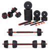 Idealno za kućne treninge snage i fitnesa Uključene su dvije bučice od 15 kg Ukupna težina: 30 kg Široka šipka/konektor za korištenje kao jedna šipka Pogodno za muškarce i žene 16 ploča za utege Podesiva težina - prilagodite intenzitet svom treningu Udobne, neklizajuće ručke Napravljeno od visokokvalitetnih materijala
