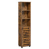 Specifikacije:- Boja: Rustikalno smeđa- Materijal: Iverica- Veličina proizvoda: 40 x 30 x 167 cm (D x Š x V)- Težina proizvoda: 19,3 kg- Ukupna maksimalna statička nosivost: 15 kg Sadržaj paketa:- 1 x Visoki ormarić za kupaonicu- 1 x Komplet protiv prevrtanja- 1 x Komplet za sastavljanje- 1 x Upute