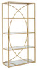 Pravokutna polica za knjige u zlatnom metalu s 5 staklenih polica s ogledalom. Metal zlatne boje daje dašak klase svakoj glamuroznoj sobi. Geometrijske i zaobljene linije savršeno se uklapaju u bilo koju vrstu namještaja.;Boja: Zlatna;Materijal: MDF, Željezo i Staklo