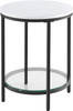 Boja: Izgled bijelog mramora, Crni okvirMaterijal: Čelik, iverica, kaljeno staklo Veličina: 45 x 55 cm (promjer x visina). Težina: 5,6 kg. Maks. Statička nosivost po polici: 10 kg