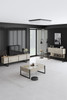 - 100% IVERICA PREMAZANA MELAMINOM Debljina: 18 mm Metalne noge Visina nogu: 15 cm Stalak za TV: Širina: 180 cm Dubina: 30 cm Visina: 47 cm Stolić za kavu: Širina: 90 cm Dubina: 39 cm Visina: 40 cm Komoda: Širina : 120 cm Visina: 80 cm Dubina: 30 cm