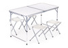 Sklopivi putni sto 4 stolice uključene u set Podesiva visina stola Sigurnosna brava za sprečavanje slučajnog sklapanja Brz i jednostavan sistem sklapanja/rasklapanja Praktična ručka za transport Sklapa se u kofer i zauzima vrlo malo prostora Savršen set za kampovanje / piknik / putovanja na otvorenom