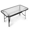 DOBRO DIZAJNIRAN BAŠTENSKI STO Stol je prilagođen za smještaj do 6 osoba. Velika ploča dimenzija 140x80 cm izrađena je od kaljenog stakla, što je čini otpornom na ogrebotine, prljavštinu i mehanička oštećenja. Crni okvir vidljiv je na rubovima stola, što mu dodaje moderan karakter.