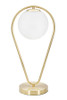 Zlatna metalna stolna lampa s bijelom staklenom kuglom. Bitne linije koje podsjećaju na balon na vrući zrak kombinirane su s elegancijom zlata kako bi se stvorila jedinstvena kombinacija.;Boja: Bijela i Zlatna;Materijal: ŽELJEZO I STAKLO