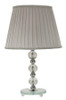 Elegantna stolna lampa u srebrnoj boji metala i stakla. U kompletu sa abažurom od sive tkanine s tamno sivim završecima.;Boja: Srebrna;Materijal: Metal, Staklo i Tkanina