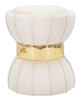 Okrugli tabure presvučen sintetičkim baršunom s elegantnom središnjom zlatnom ukrasnom trakom. Oblik podsjeća na pješčani sat.;Boja: Krem;Materijal: Tkanina i Metal