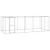 Ovaj višenamjenski kavez za pse ima višestruke namjene: igranje, vježbanje, treniranje ili jednostavno čuvanje vašeg psa na sigurnom. Bit će savršeno mjesto za igranje vaših krznenih prijatelja! Ovaj kavez za pse pruža dovoljno prostora za vježbanje. Mreža svuda okolo sprječava nestašluke i neočekivane nesreće te ujedno omogućuje ventilaciju. Zahvaljujući čvrstoj konstrukciji od pocinčanog čelika, ovaj kavez za pse izdržljiv je i izrađen da traje. Napravljen od PE-a, uključeni krov otporan je na vodu i UV zrake te štiti od sunca, kiše, snijega i drugih vremenskih utjecaja. Krilna vrata sa sustavom sa zasunom koji se može zaključati pružaju dodatnu sigurnost i zaštitu vašim psima.