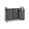 Značajke : Boja: crna, siva Materijali: MDF ploča, čelik, Oxford tkanina Dimenzije proizvoda: 92,5 x 33 x 72 cm (D x Š x V) Dimenzije torbe: 25 x 30 x 51 cm (D x Š x V) Težina: 8,1 kg Ukupna maksimalna statička nosivost: 30 kgMaksimalna statička nosivost torbe: 10 kg Maksimalna statička nosivost ladice: 20 kg Isporuka : 1 x košara za rublje 2 x uređaj protiv naginjanja 1 x komplet za montažu 1 x korisnički priručnik