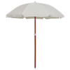 Ovaj elegantni suncobran štiti vas od štetnih sunčevih UV zraka i ujedno stvara savršenu hladovinu. Napravljen je od poliestera koji štiti od UV zračenja i ne blijedi. Tenda suncobrana pruža vam najbolju moguću zaštitu od sunca i lako se čisti. Snažna čelična šipka s premazom u boji drva i 8 nosača čini suncobran stabilnim i izdržljivim. Imajte na umu da preporučujemo tretiranje tkanine suncobrana vodootpornim sprejem ako se bude upotrebljavao na jakoj kiši.